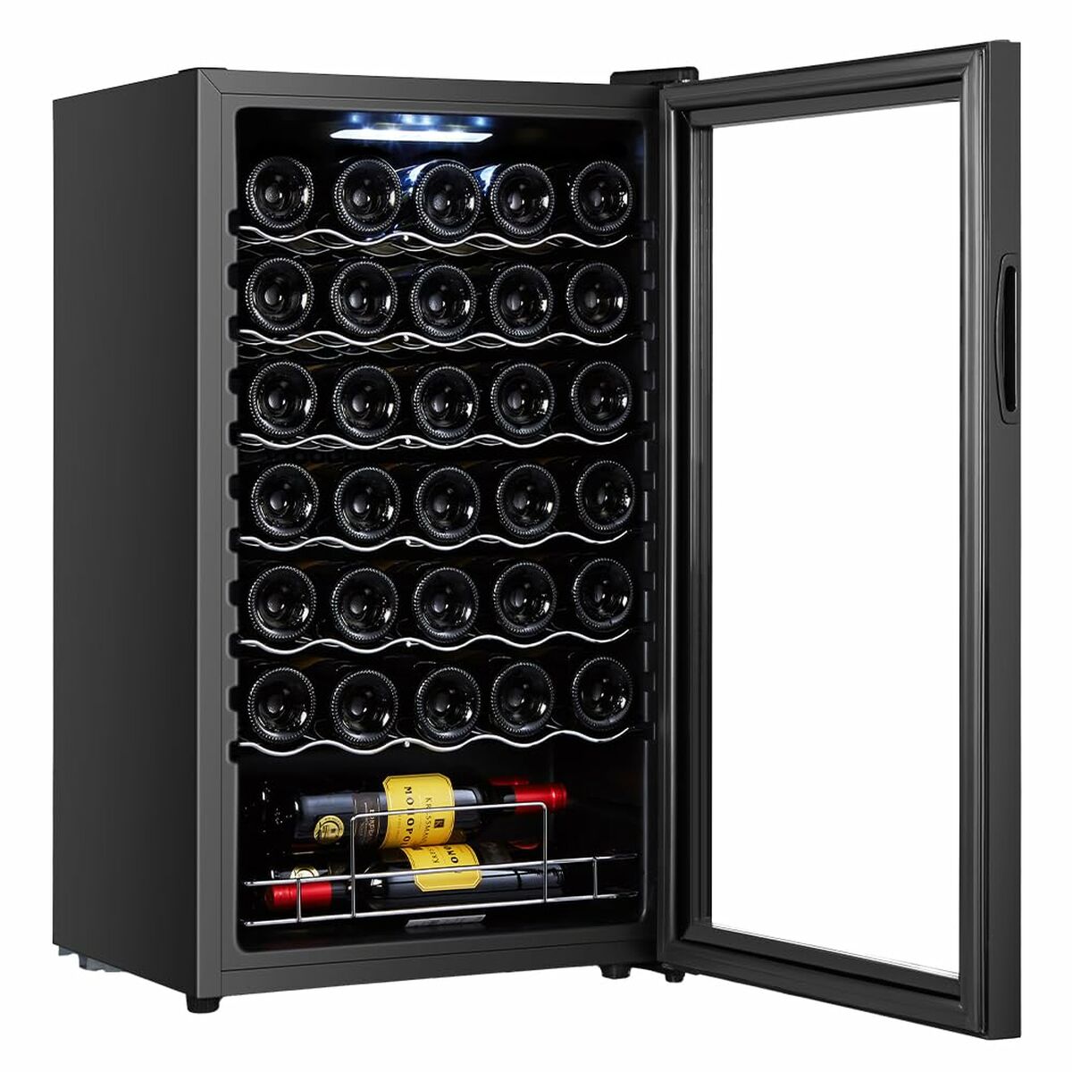 - Capacity: 34 bottles